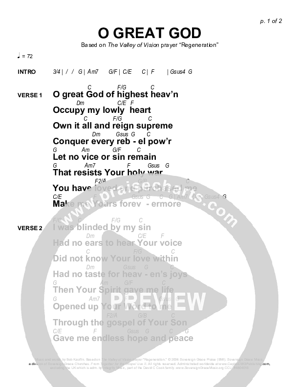 O Great God Chords & Lyrics (Sovereign Grace / Bob Kauflin)