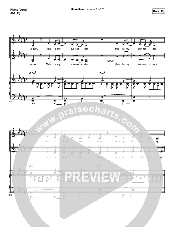 Download the sheet music for Make Room by The Church Will Sing / Elyssa Smith / Community Music, from the album The Church Will Sing (Vol 2). This song was arranged by Daniel Galbraith in the key of F, G, Gb.