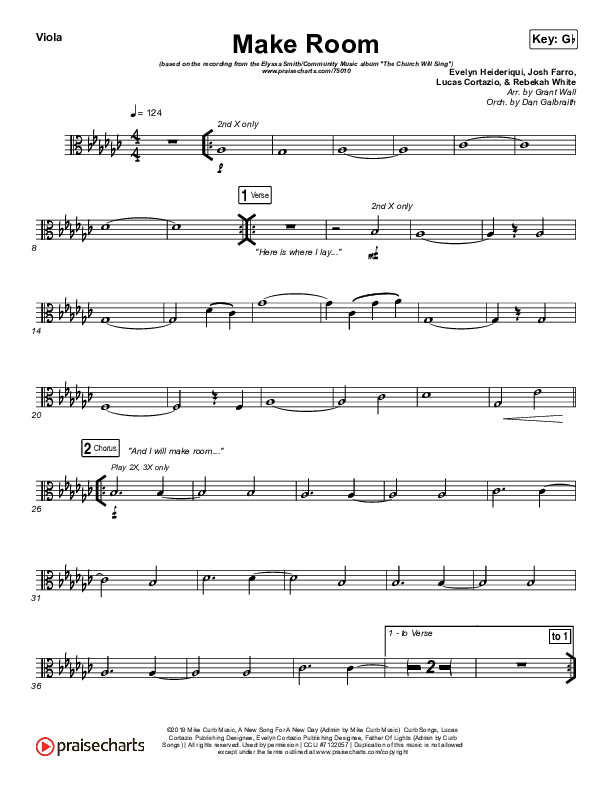 Download the Viola sheet music for Make Room by The Church Will Sing / Elyssa Smith / Community Music, from the album The Church Will Sing (Vol 2). This song was arranged by Daniel Galbraith in the key of F, G, Gb.