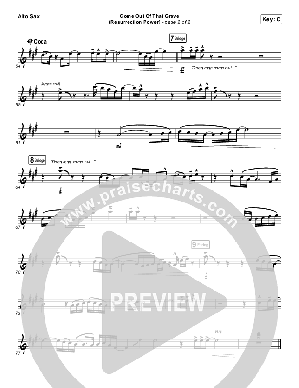 Download the AltoSax sheet music for Come Out Of That Grave (Resurrection Power) (Live) by Bethel Music / Brandon Lake, from the album Revival's In The Air. This song was arranged by Daniel Galbraith in the key of Bb, C.