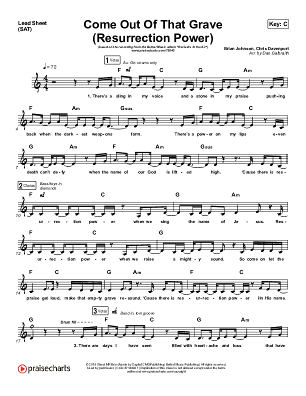 Come Out Of That Grave (Resurrection Power) (Live) Sheet Music PDF (Bethel Music / Brandon Lake)