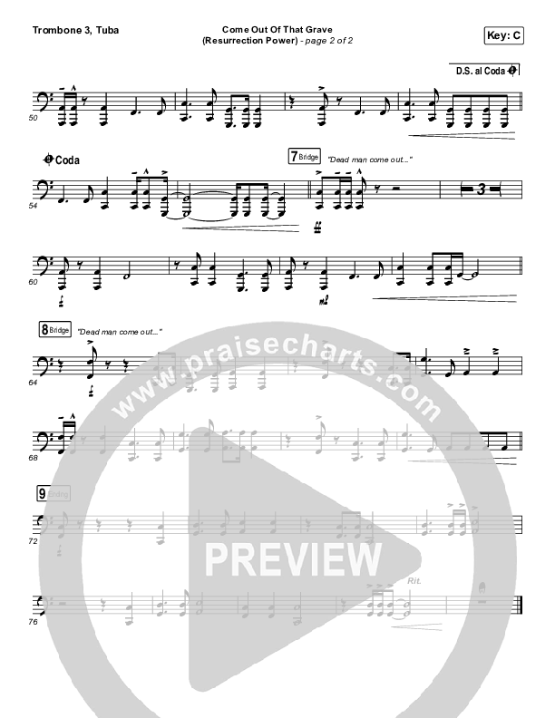 Come Out Of That Grave (Resurrection Power) (Live) Trombone/Tuba Sheet Music PDF (Bethel Music / Brandon Lake)