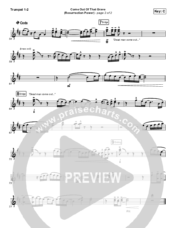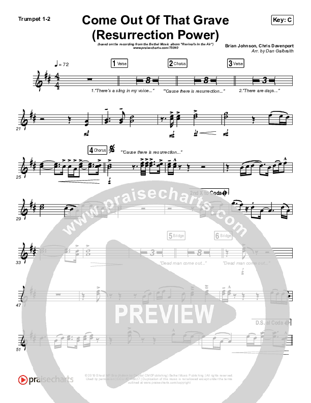 Download the trumpet sheet music for Come Out Of That Grave (Resurrection Power) (Live) by Bethel Music / Brandon Lake, from the album Revival's In The Air. This song was arranged by Daniel Galbraith in the key of Bb, C.