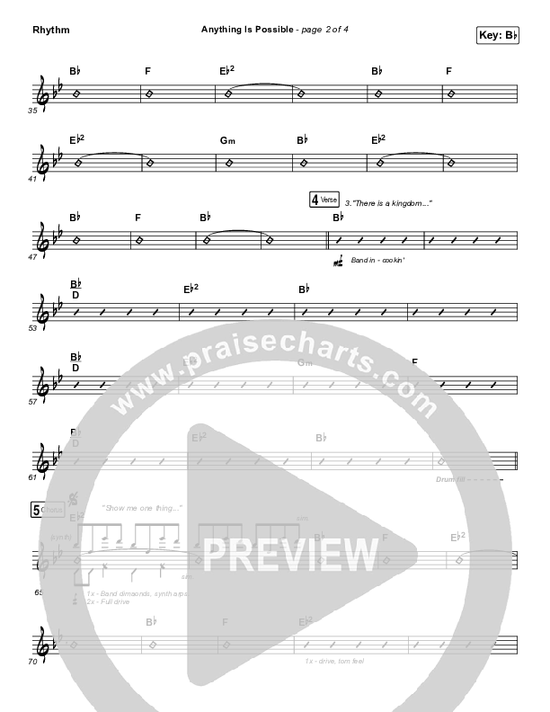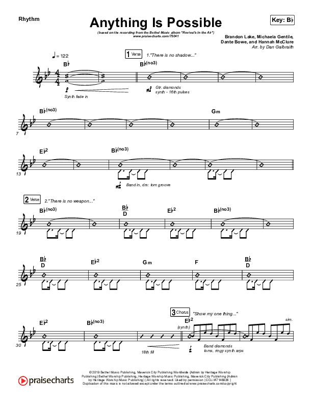 Download the Rhythm Chart for Anything Is Possible (Live) by Bethel Music / Dante Bowe, from the album Revival's In The Air. This song was arranged by Daniel Galbraith in the key of Bb, C.