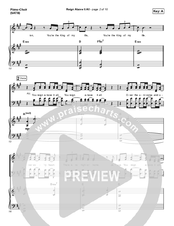 Download the PDF sheet music for Reign Above It All (Live) by Bethel Music / Paul McClure, from the album Revival's In The Air. This song was arranged by Daniel Galbraith in the key of A, Ab, C.