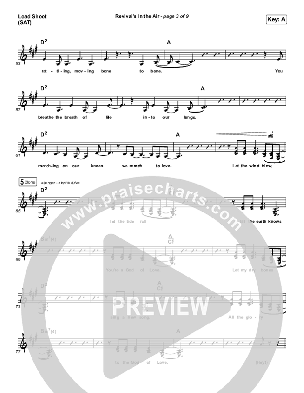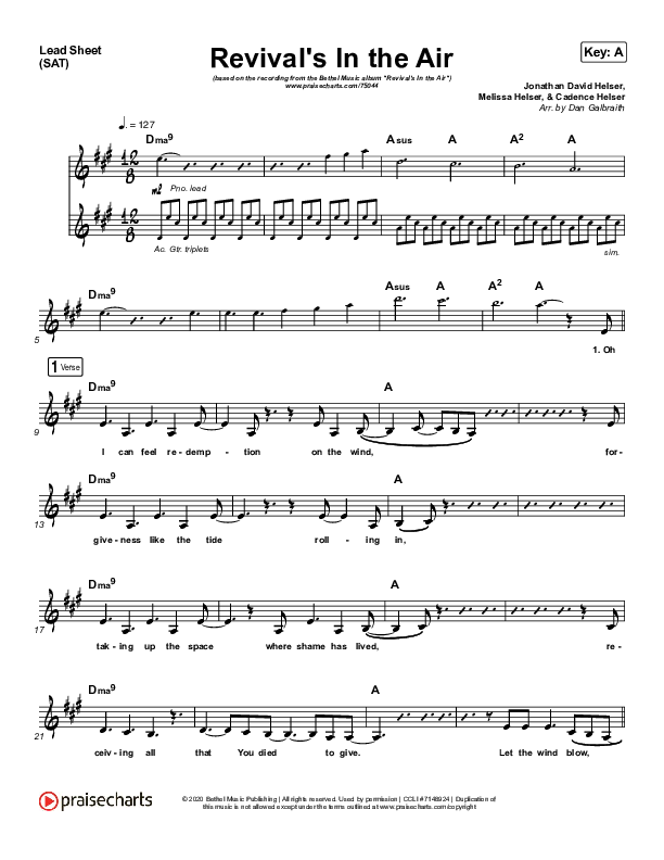 Download the sheet music for Revival's In The Air (Live) by Bethel Music / Melissa Helser, from the album Revival's In The Air. This song was arranged by Daniel Galbraith in the key of A, Bb.