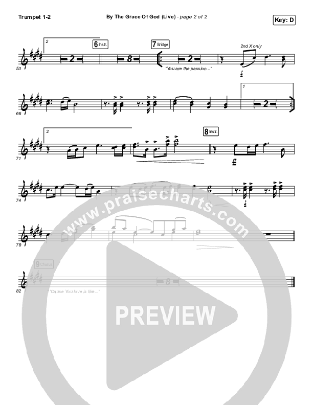 By The Grace Of God (Live) Trumpet Sheet Music PDF (Bethel Music / Brian Johnson / Jenn Johnson)