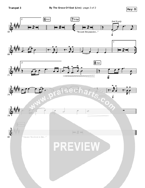 By The Grace Of God (Live) Trumpet Sheet Music PDF (Bethel Music / Brian Johnson / Jenn Johnson)