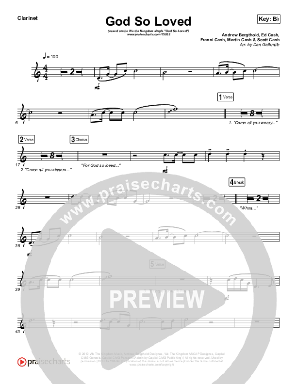 Download the Orchestration wind parts for God So Loved by We The Kingdom, from the album Holy Water. This song was arranged by Daniel Galbraith in the key of A, Ab, Bb, F, G.