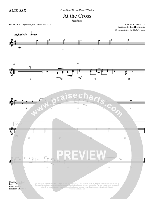 Download the AltoSax sheet music for At The Cross by Todd Billingsley, from the album Congregational Hymn Anthems.