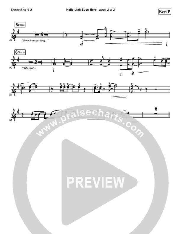 Download the Tenor Sax sheet music for Hallelujah Even Here by Lydia Laird, from the album Hallelujah Even Here. This song was arranged by Daniel Galbraith in the key of F, G.