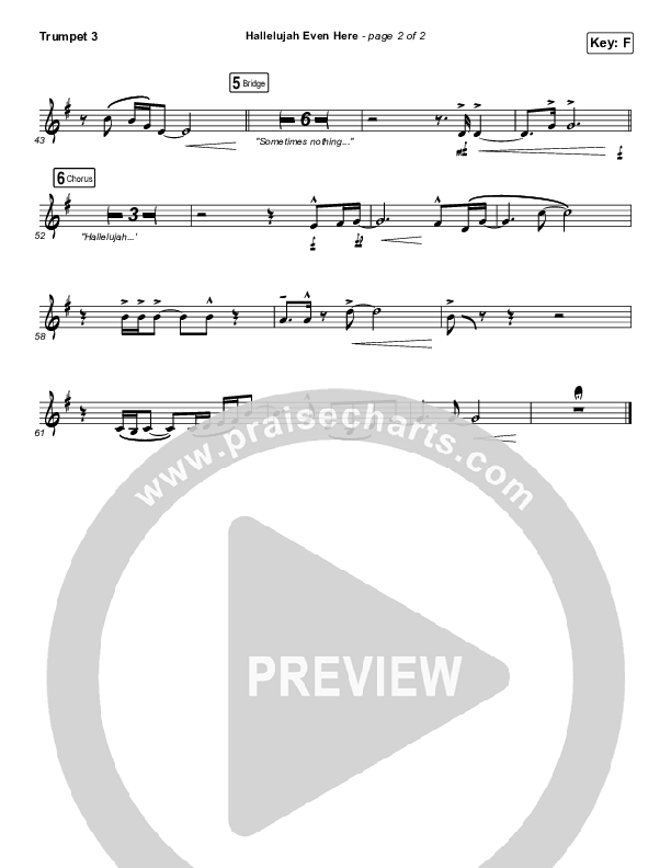 Download the Trumpet 3 sheet music for Hallelujah Even Here by Lydia Laird, from the album Hallelujah Even Here. This song was arranged by Daniel Galbraith in the key of F, G.