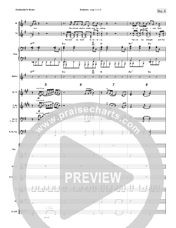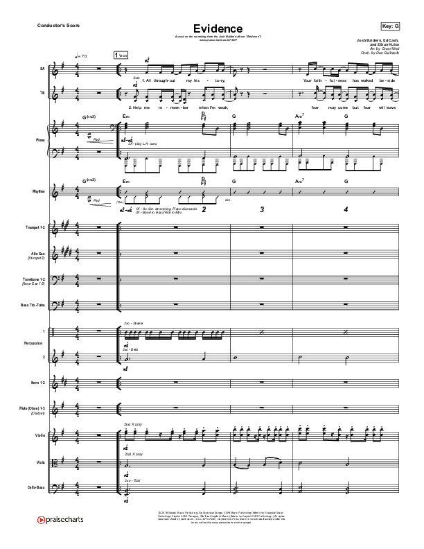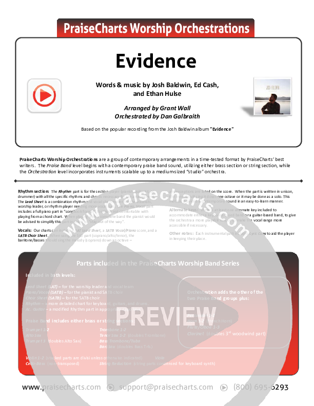 Download the Orchestration for Evidence by Josh Baldwin, from the album Evidence. This song was arranged by Grant Wall / Daniel Galbraith in the key of F, G.