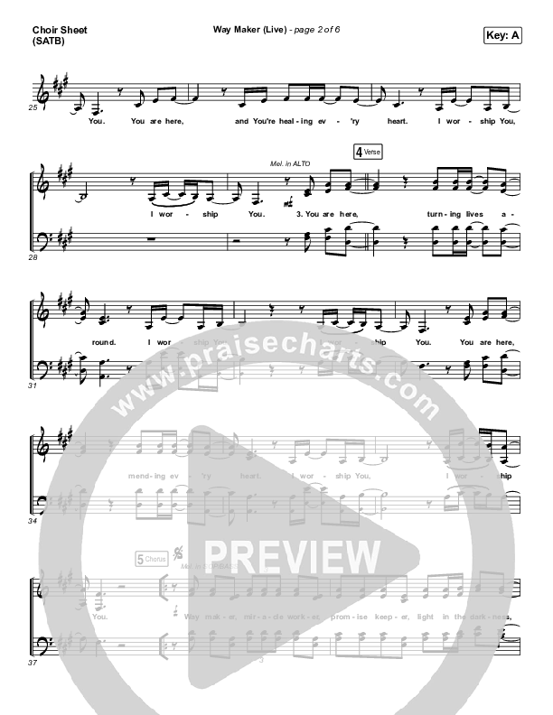 Download the Choir Sheet for Way Maker (Live) by Sounds Of Unity / Darlene Zschech / William McDowell / REVERE, from the album Way Maker. This song was arranged by Grant Wall / Daniel Galbraith in the key of A, Ab.