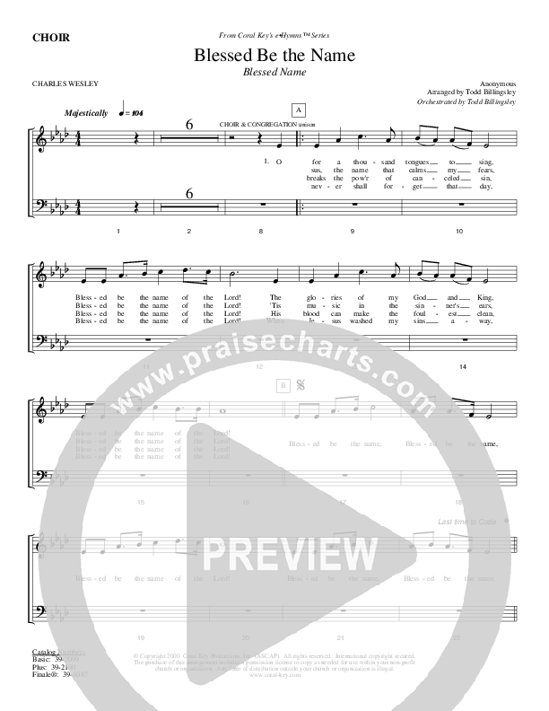 Download the Orchestration for Blessed Be The Name by Todd Billingsley, from the album Congregational Hymn Anthems.
