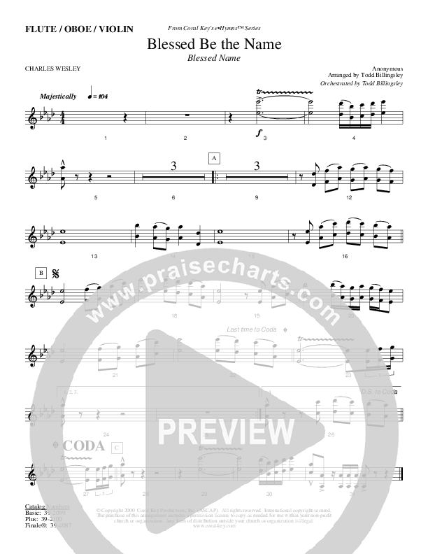 Download the Flute/Oboe sheet music for Blessed Be The Name by Todd Billingsley, from the album Congregational Hymn Anthems.