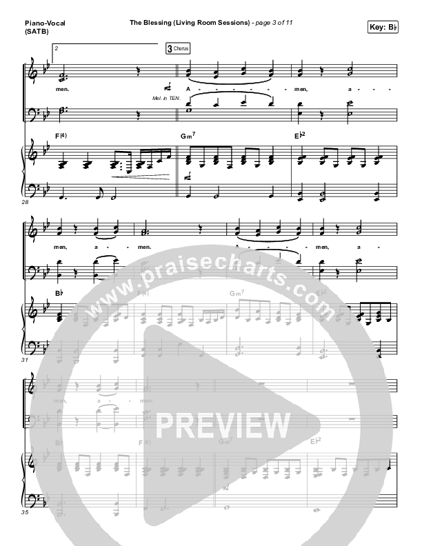 Download the sheet music for The Blessing (Living Room Sessions) by Elevation Worship / Chris Brown / Tiffany Hammer, from the album Graves Into Gardens. This song was arranged by Grant Wall in the key of Bb, C.