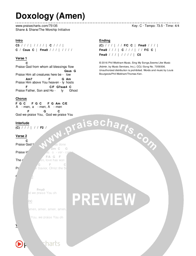 Doxology (Amen) Chords PDF (Shane & Shane/The Worship Initiative)