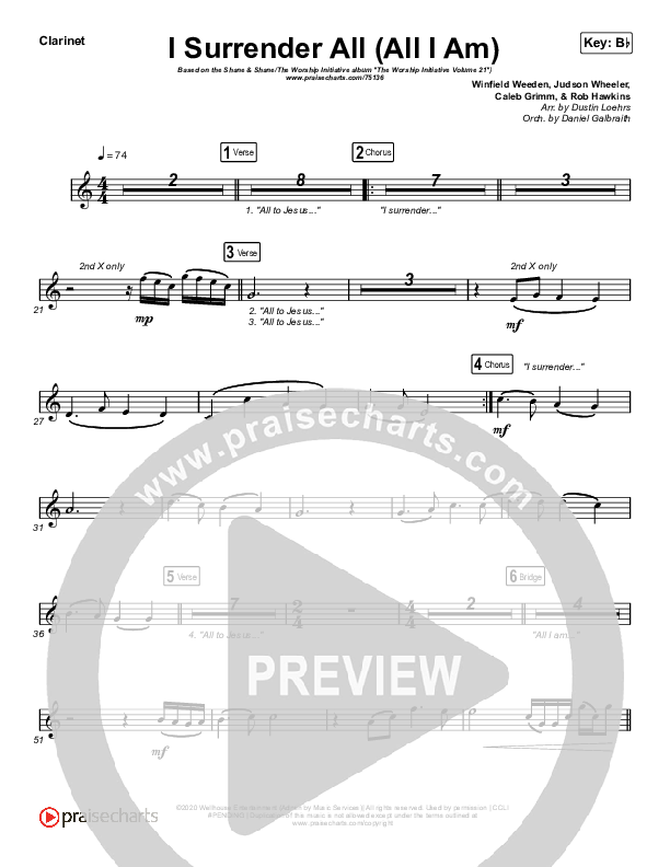 Download the Orchestration wind parts for I Surrender All (All I Am) by Shane & Shane/The Worship Initiative, from the album The Worship Initiative Volume 21. This song was arranged by Dustin Loehrs / Daniel Galbraith in the key of Bb, C.