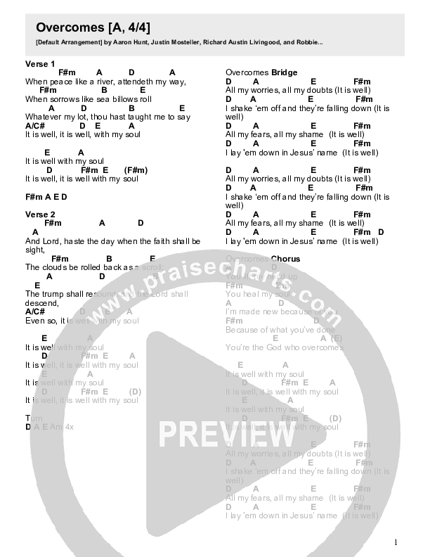 It Is Well / Overcomes (Live) Chords PDF (Crossroads Music)