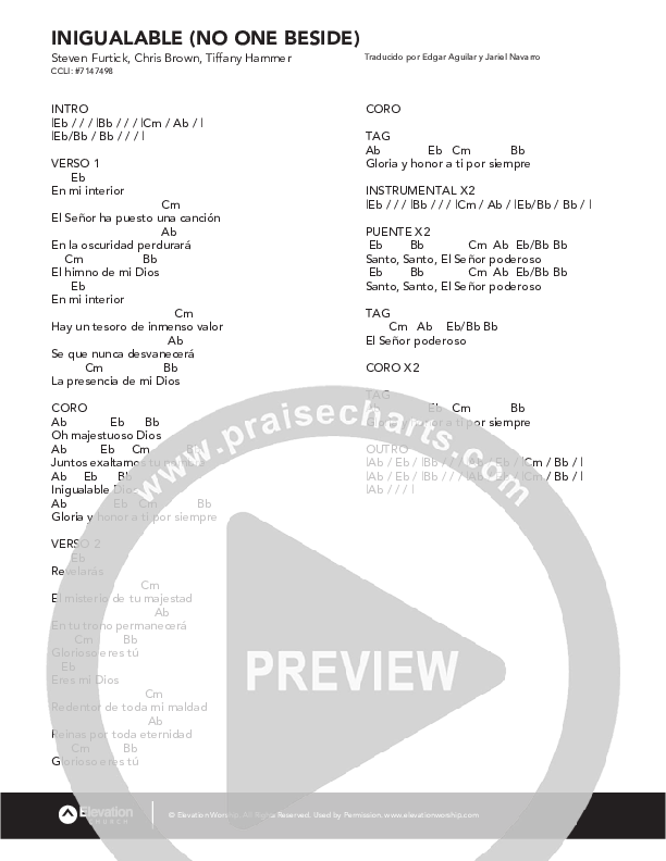 Inigualable (No One Beside) Chords PDF (Elevation Worship)