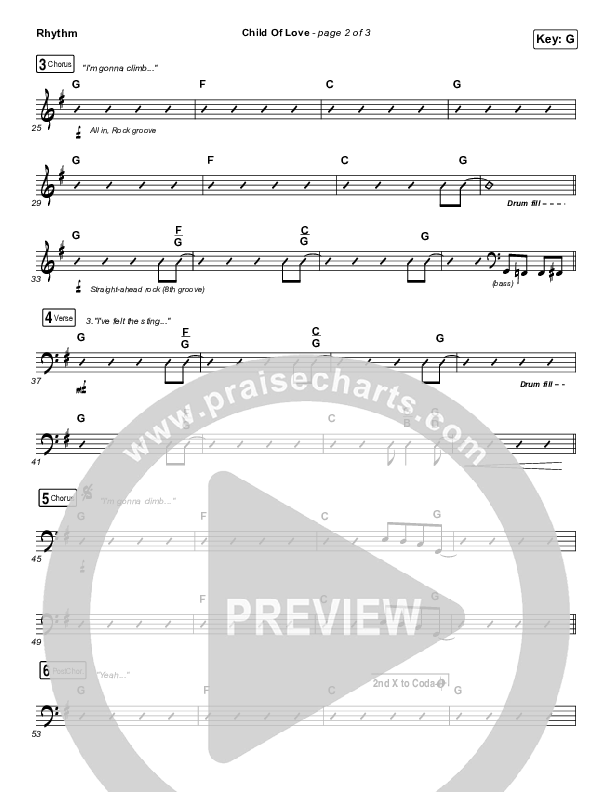 Download the Rhythm Chart for Child Of Love by We The Kingdom, from the album Holy Water. This song was arranged by Daniel Galbraith in the key of F, G.
