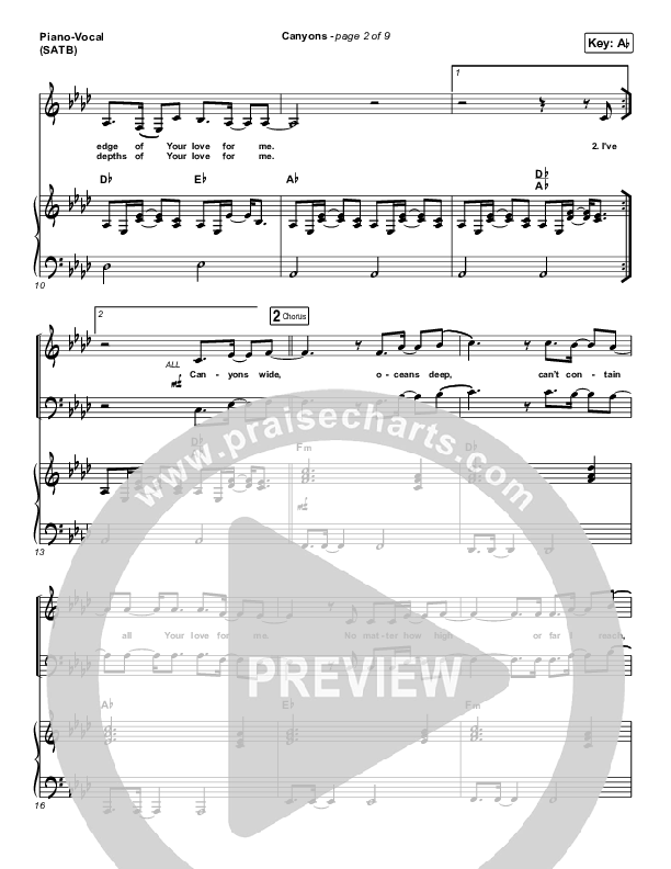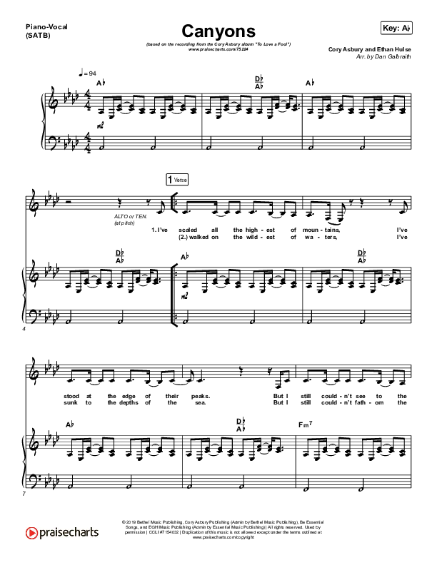 Download the sheet music for Canyons by Cory Asbury, from the album To Love A Fool.