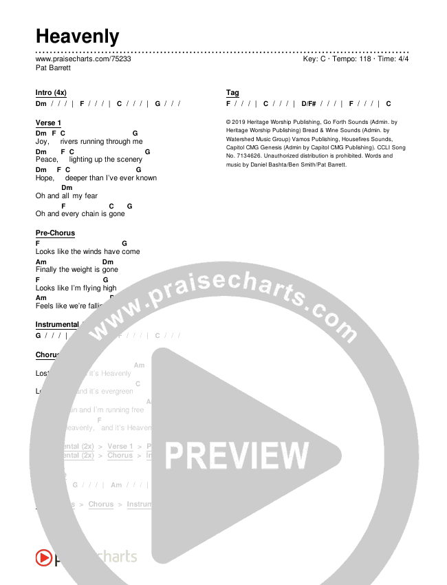 Download the PDF Chord Charts for Heavenly by Pat Barrett, from the album Act Justly Love Mercy Walk Humbly.