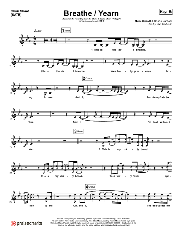 Breathe / Yearn Choir Sheet Music PDF (Shane & Shane)