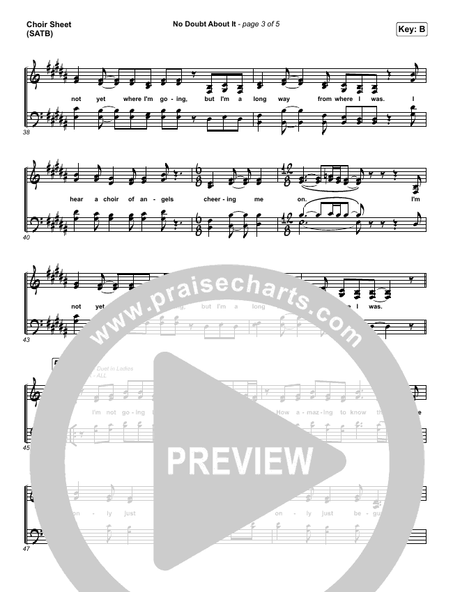 Download the Choir Sheet for No Doubt About It by We The Kingdom, from the album Holy Water. This song was arranged by Daniel Galbraith in the key of B, Bb.