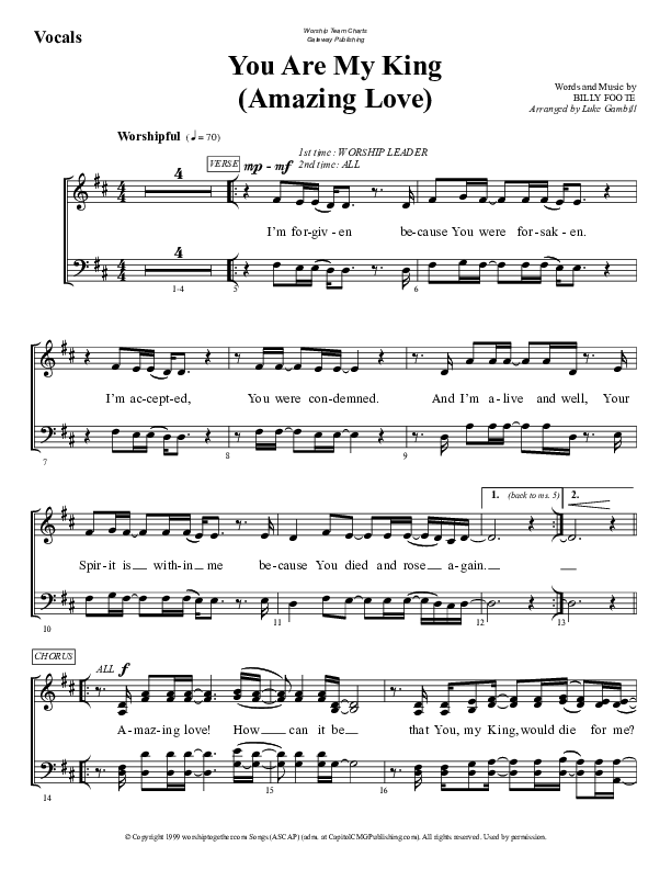 You Are My King (Amazing Love) Sheet Music PDF (WorshipTeam.tv)
