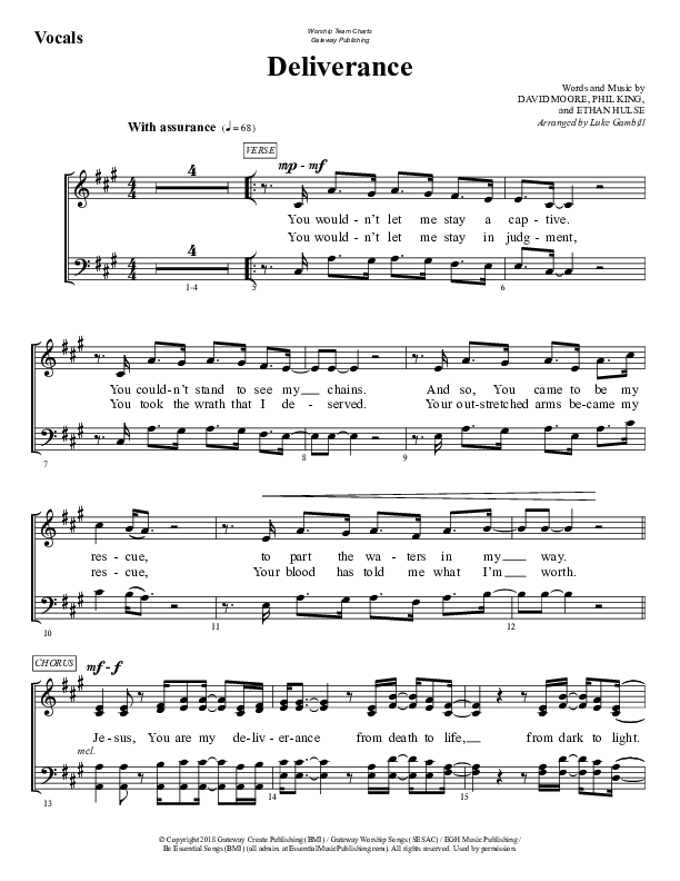Download the Choir Sheet for Deliverance by WorshipTeam.tv, from the album WorshipTeam.tv. This song was arranged by Luke Gambill in the key of A.