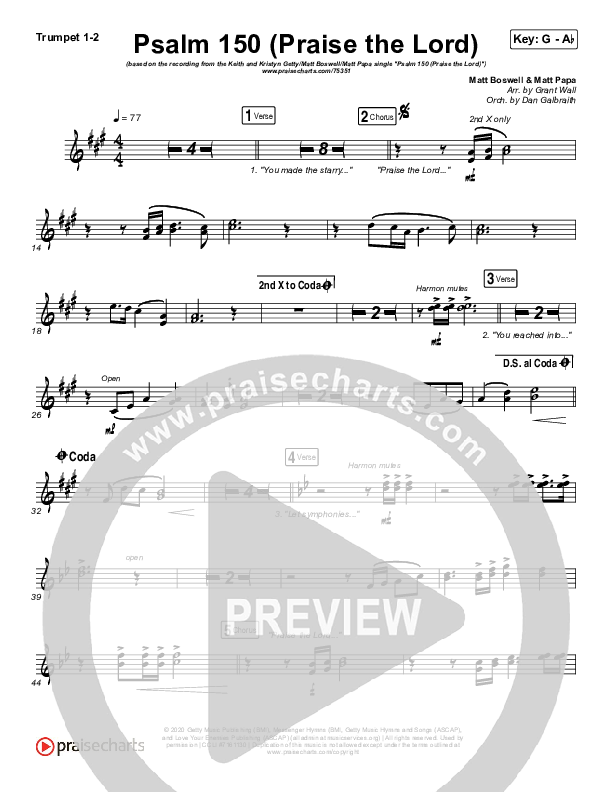 Psalm 150 (Praise The Lord) Sheet Music PDF (Matt Boswell / Matt Papa / Keith & Kristyn Getty)