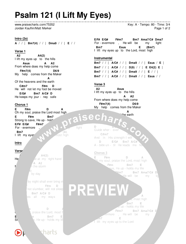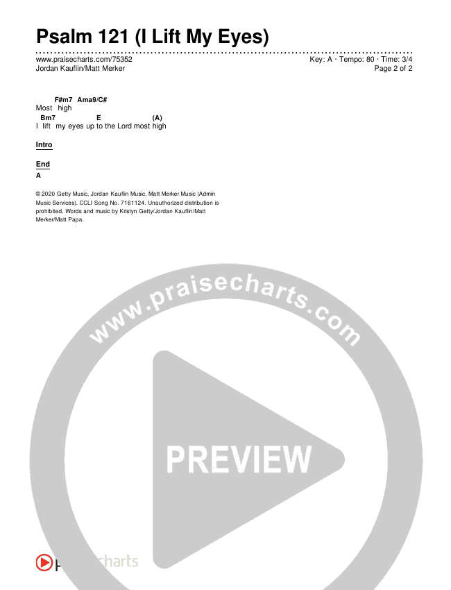 Psalm 121 (I Lift My Eyes) Chords PDF (Jordan Kauflin / Matt Merker / Keith & Kristyn Getty)