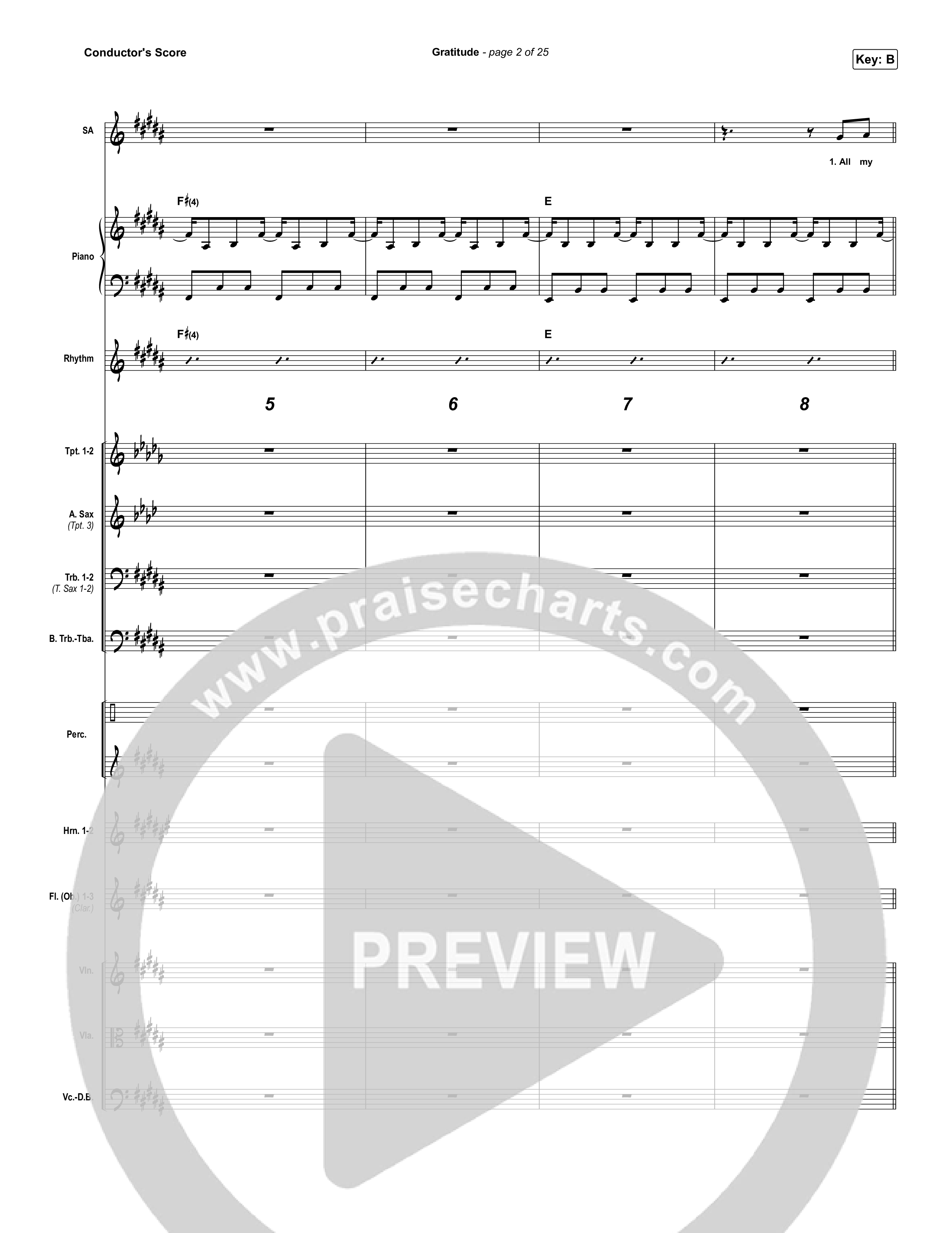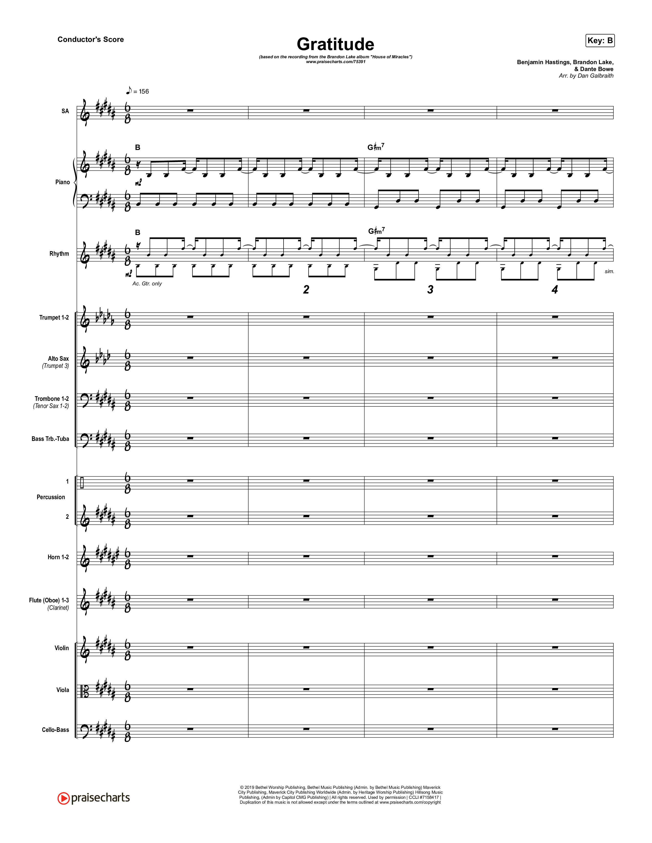 Download the Orchestration for Gratitude by Brandon Lake, from the album House Of Miracles. This song was arranged by Daniel Galbraith in the key of A, B, Bb, E.