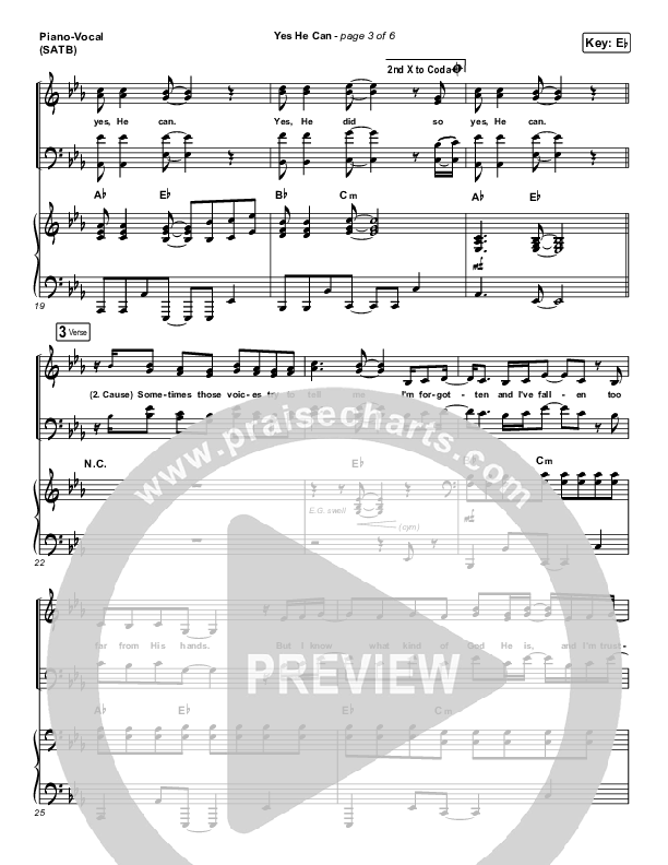 Download the sheet music for Yes He Can by CAIN, from the album CAIN- EP. This song was arranged by Dustin Loehrs / Daniel Galbraith in the key of C, D, Eb.