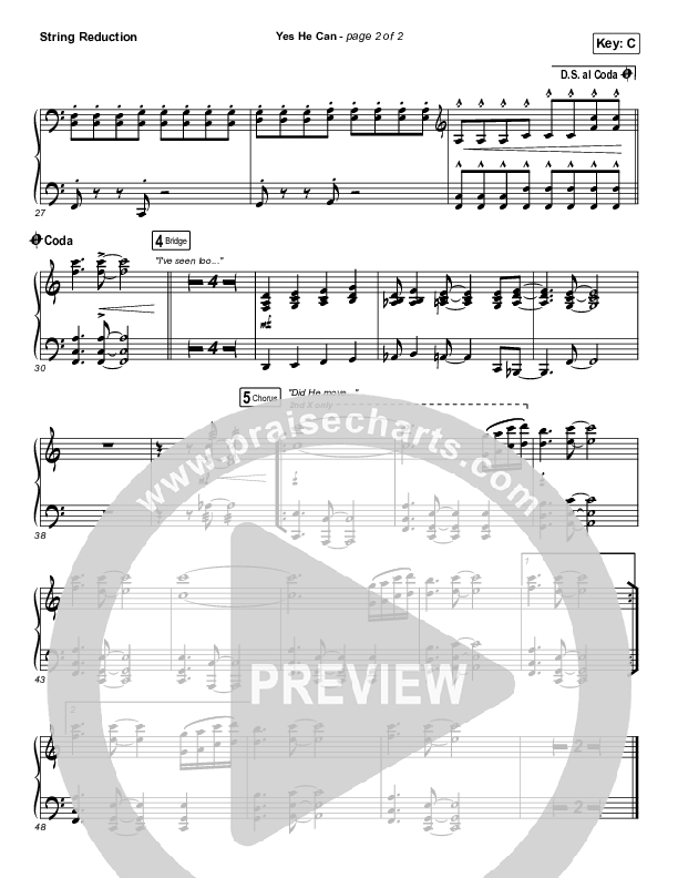 Yes He Can String Reduction Sheet Music PDF (CAIN)
