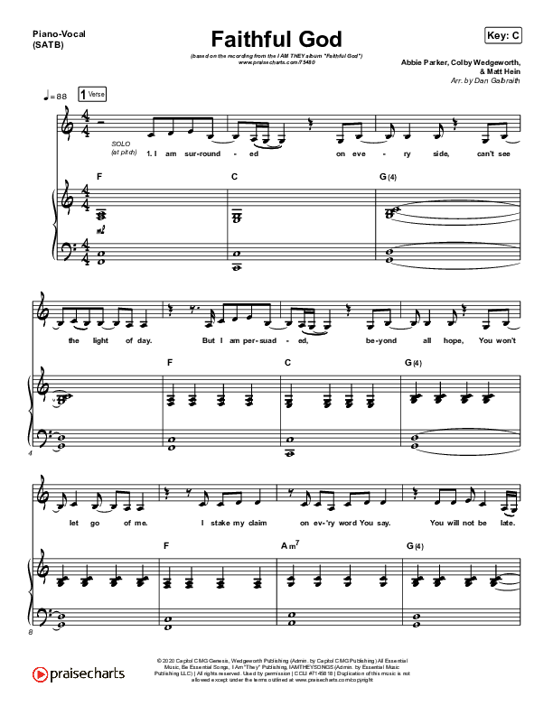 Download the sheet music for Faithful God by I Am They, from the album Faithful God. This song was arranged by Daniel Galbraith in the key of C, D.