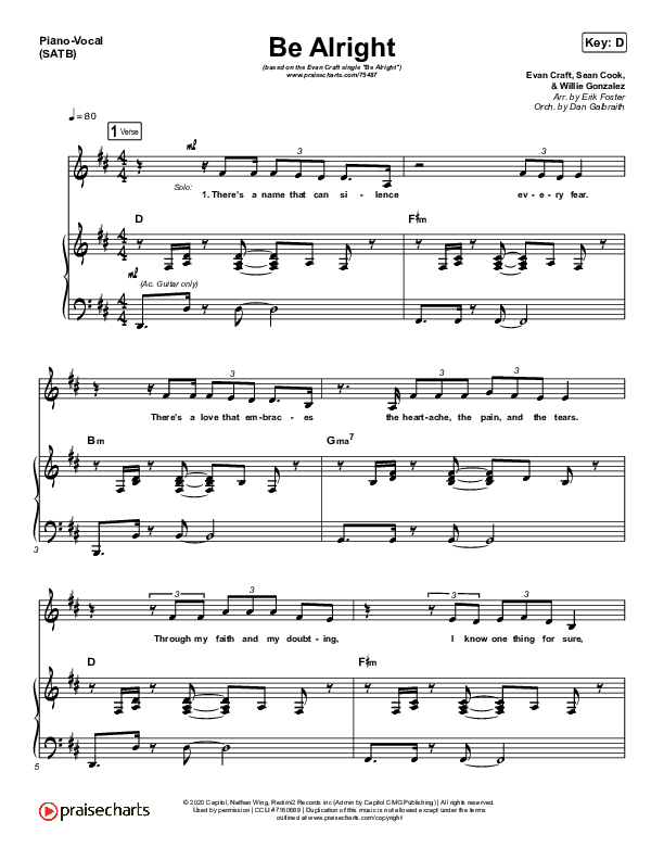 Be Alright Piano/Vocal (SATB) (Evan Craft / Danny Gokey)