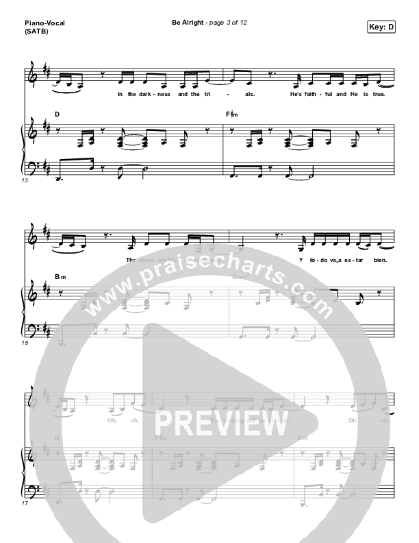 Download the sheet music for Be Alright by Evan Craft / Danny Gokey, from the album Desesperado. This song was arranged by Erik Foster / Daniel Galbraith in the key of D, Eb.