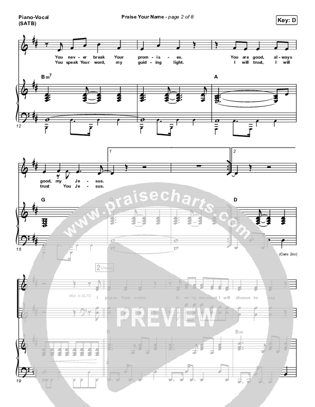 Download the sheet music for Praise Your Name by North Point Worship, from the album Find A Reason - EP. This song was arranged by Daniel Galbraith in the key of C, D.