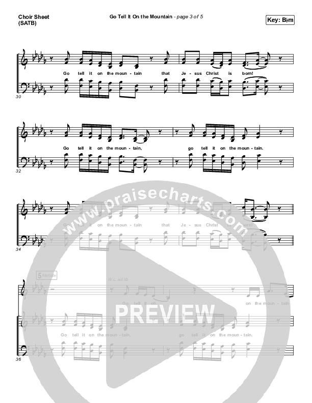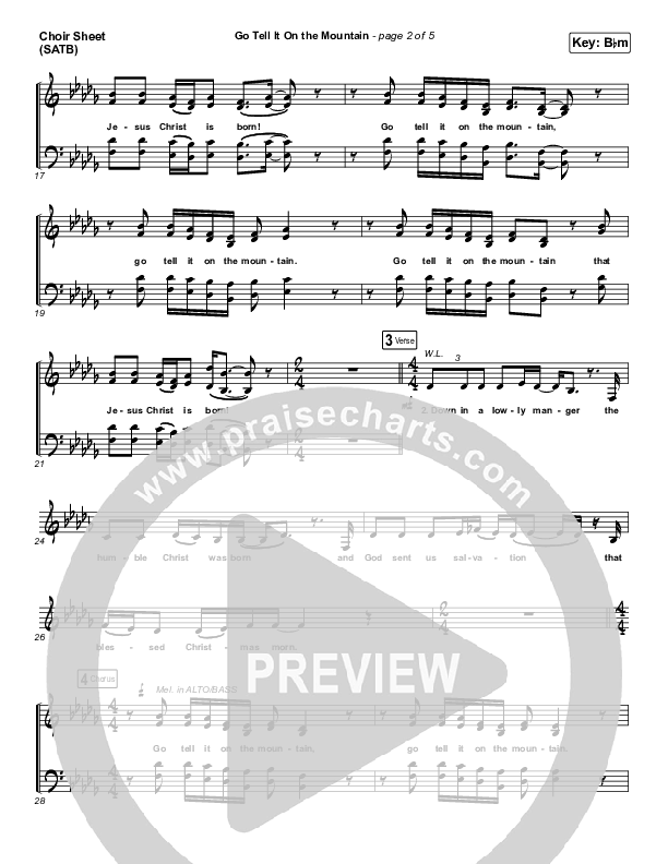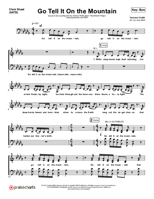 Download the Choir Sheet for Go Tell It On The Mountain by Tommee Profitt / Crowder, from the album The Birth Of A King. This song was arranged by Joel Mott in the key of Am, Bbm.