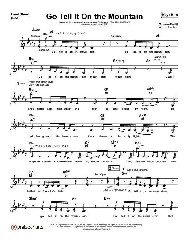 Download the sheet music for Go Tell It On The Mountain by Tommee Profitt / Crowder, from the album The Birth Of A King. This song was arranged by Joel Mott in the key of Am, Bbm.