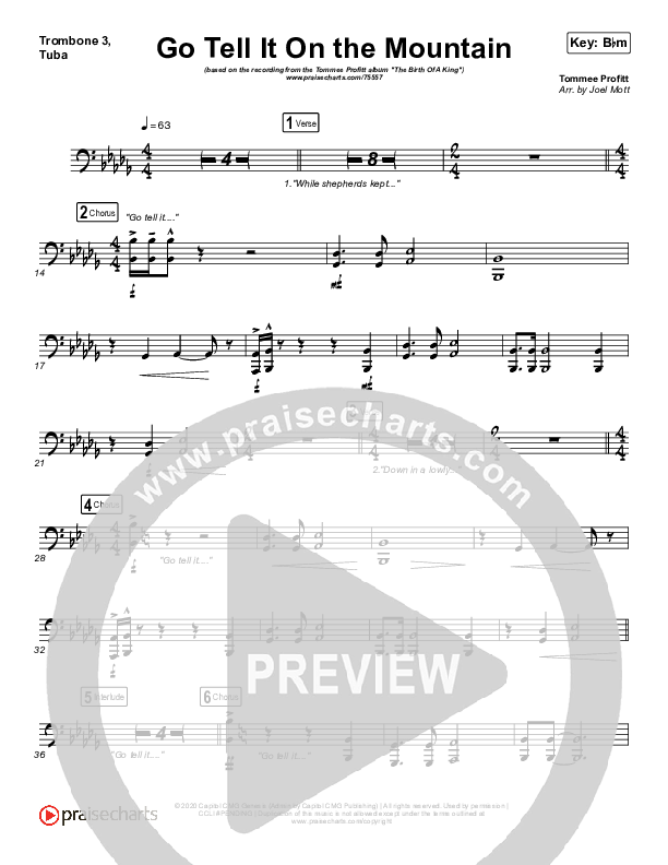 Go Tell It On The Mountain Trombone/Tuba Sheet Music PDF (Tommee Profitt / Crowder)