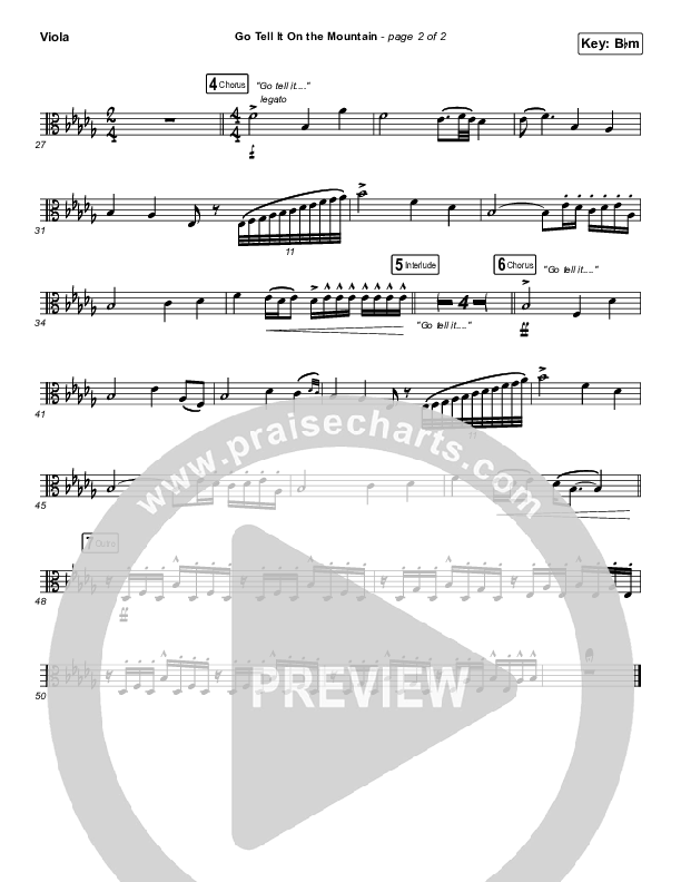 Download the Viola sheet music for Go Tell It On The Mountain by Tommee Profitt / Crowder, from the album The Birth Of A King. This song was arranged by Joel Mott in the key of Am, Bbm.