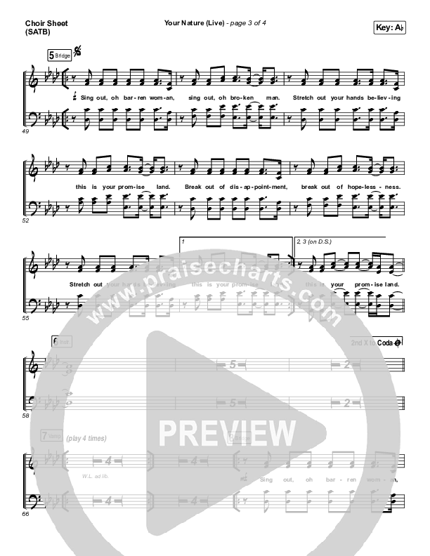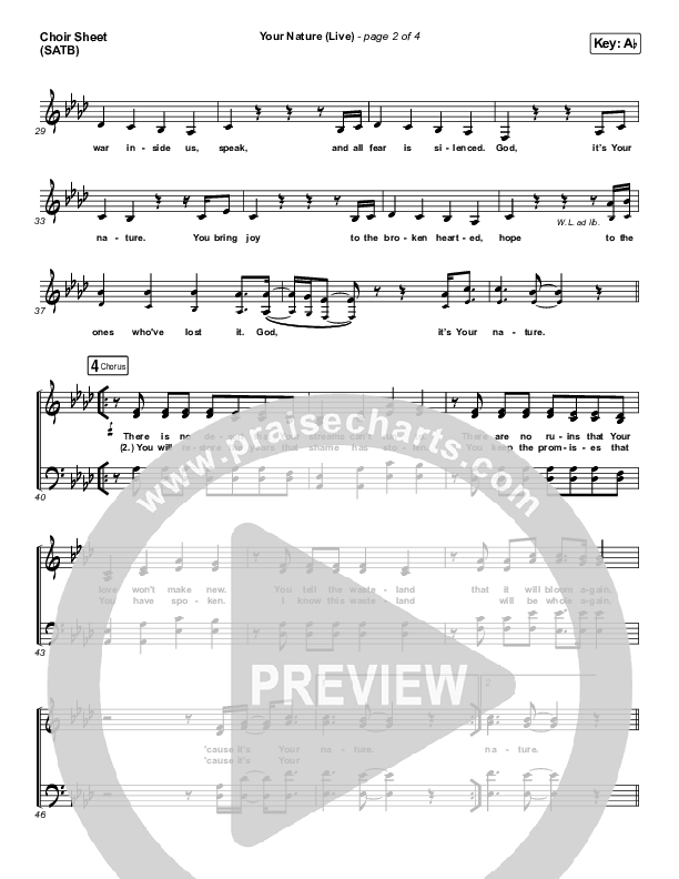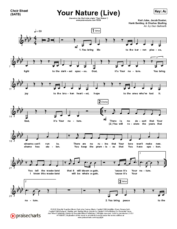 Download the Choir Sheet for Your Nature (Live) by Kari Jobe, from the album The Blessing. This song was arranged by Daniel Galbraith in the key of A, Ab.