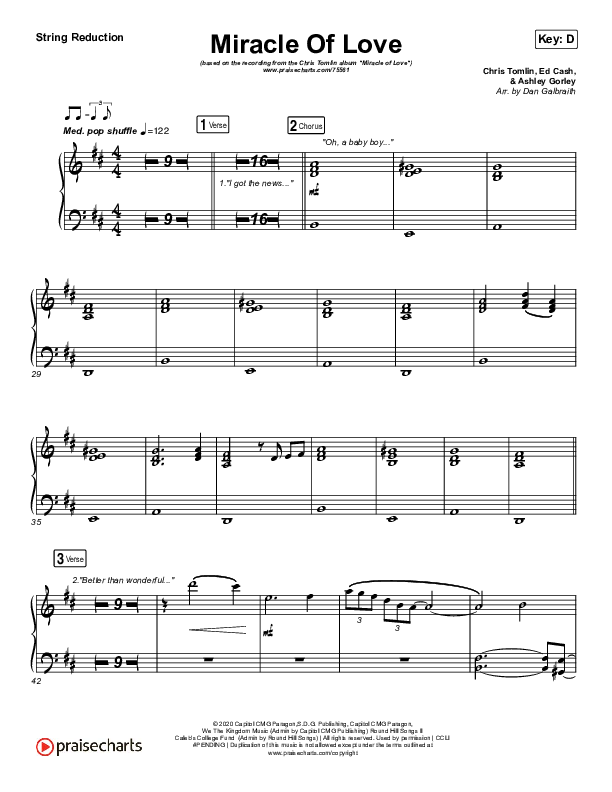 Download the Orchestration for Miracle Of Love by Chris Tomlin, from the album Miracle Of Love: Christmas Songs Of Worship. This song was arranged by Daniel Galbraith in the key of C, D, Eb.