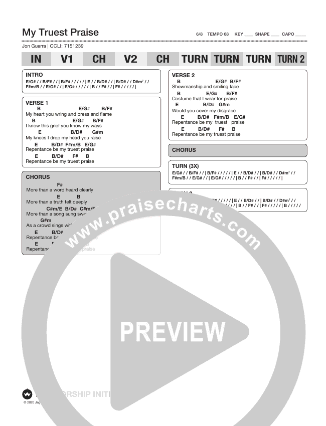 Download the PDF Chord Charts for My Truest Praise by Shane & Shane/The Worship Initiative, from the album The Worship Initiative Volume 22.