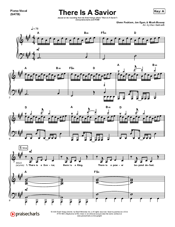 Download the sheet music for There Is A Savior by Dwell Songs, from the album There Is A Savior. This song was arranged by Daniel Galbraith in the key of A, Bb.