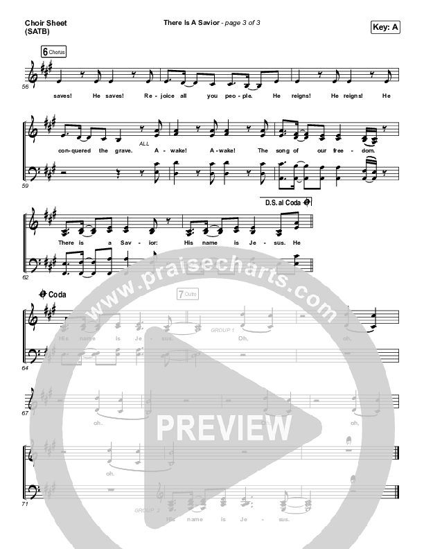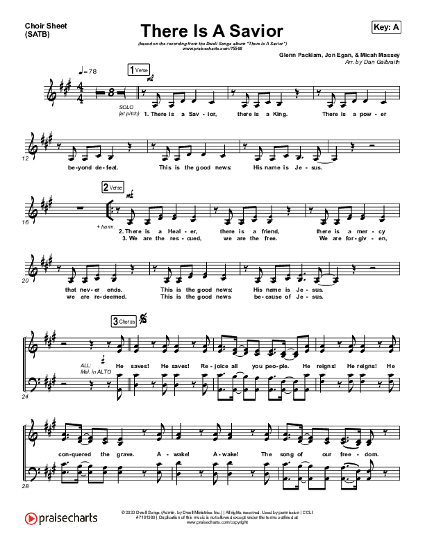 Download the Choir Sheet for There Is A Savior by Dwell Songs, from the album There Is A Savior. This song was arranged by Daniel Galbraith in the key of A, Bb.